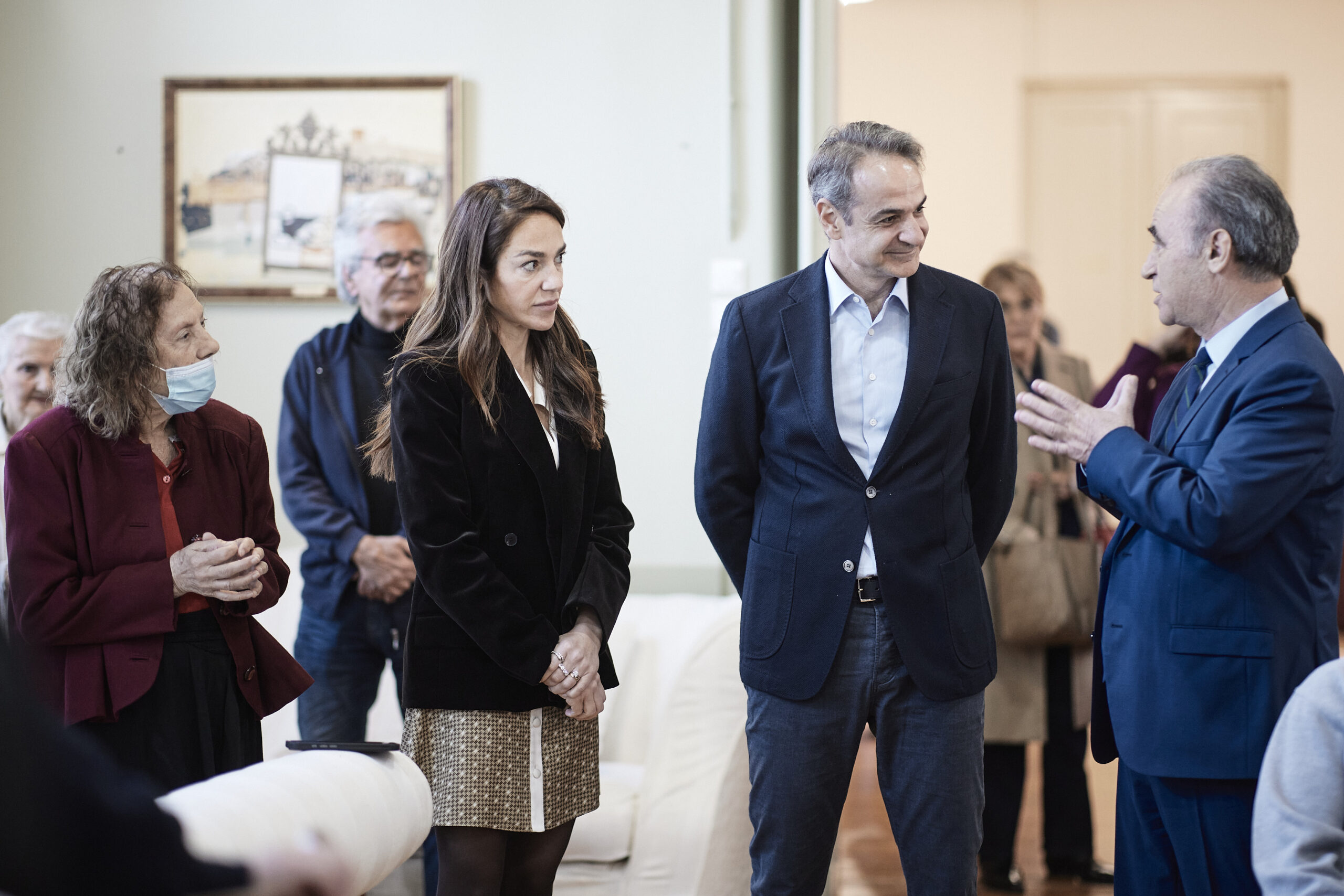 Δίπλα στον Κυριάκο Μητσοτάκη και η υπουργός Κοινωνικής Συνοχής και Οικογένειας Δόμνα Μιχαηλίδου, η οποία ενημερώθηκε από τον Πρόεδρο του Γηροκομείου, Σπύρο Χαμακιώτη, για το έργο της διοίκησης, η οποία σε συνεργασία με την κυβέρνηση κινείται ήδη στην κατεύθυνση εξυγίανσης των οικονομικών του ιδρύματος και ανακαίνισης των εγκαταστάσεών του, προκειμένου αφενός να βελτιωθούν ακόμη περισσότερο οι συνθήκες φιλοξενίας και αφετέρου να αυξηθεί ο αριθμός των ηλικιωμένων που φροντίζει, και είχε την ευκαιρία να επισκεφθεί τα ανακαινισμένα μαγειρεία.