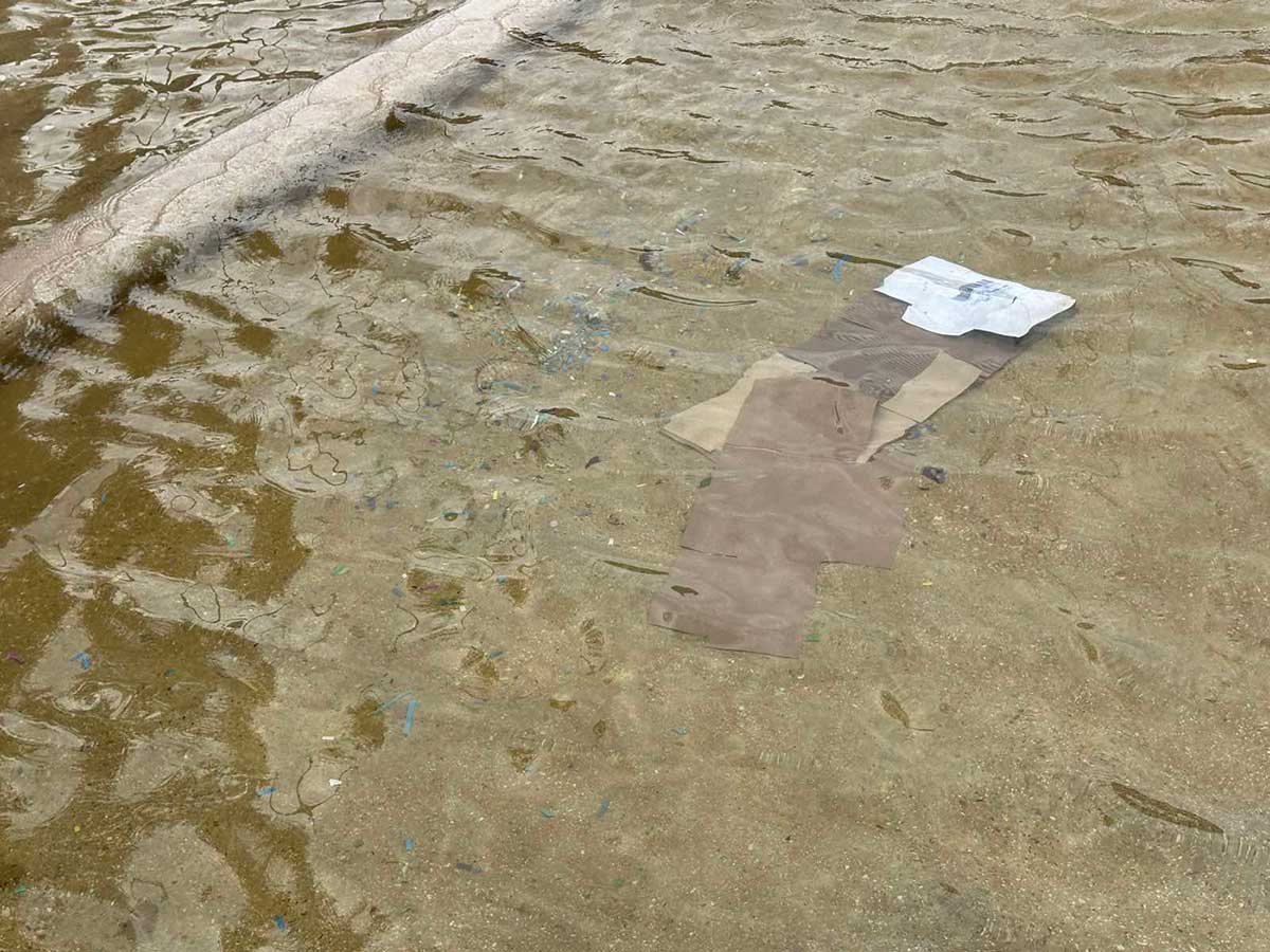 Σε αρκετά σημεία διακρίνονται απορρίμματα στον πυθμένα αλλά και αντικείμενα που επιπλέουν, δημιουργώντας μια εικόνα που δεν ταιριάζει με έναν χώρο όπου κινούνται καθημερινά οικογένειες και παιδιά.